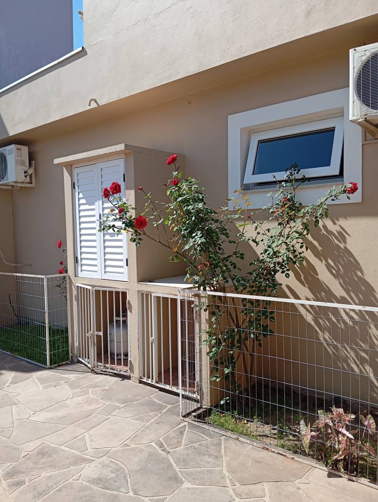 Pátio amplo, totalmente calçado e gramado, com canil