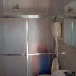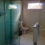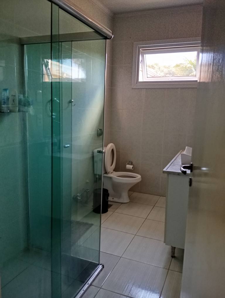 Banheiro social amplo, com box de vidro